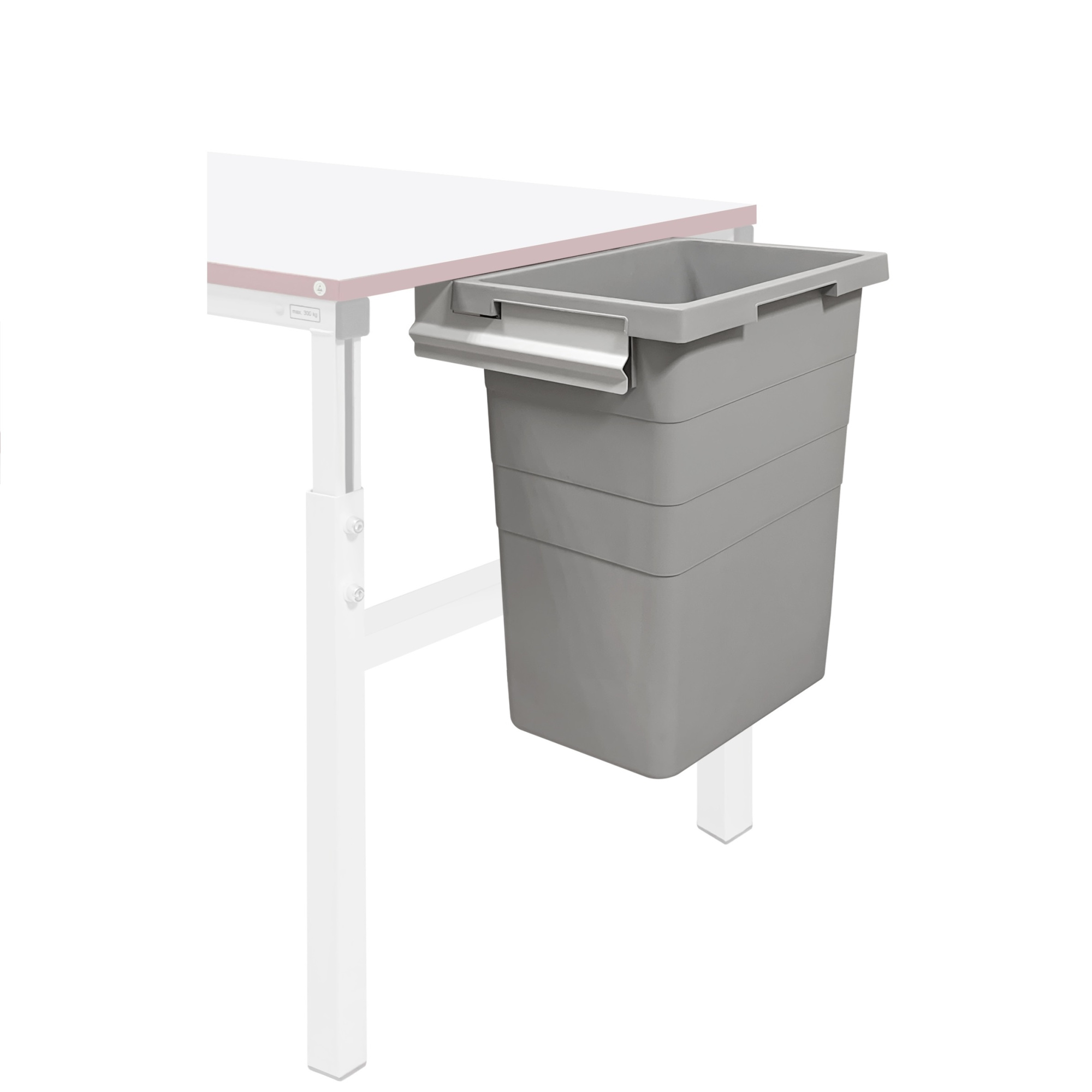 Контейнер для рабочих отходов КРО - 35-литровый контейнер для рабочих отходов. Крепится к боковой стороне упаковочного стола СУ, что облегчает процесс удаления отходов с поверхности столешницы. Может быть размещен с любой из боковых сторон упаковочного стола СУ. Максимальная нагрузка — 15 кг. Совместим с рабочими местами серий СП, СПБ, СПО, КСМ.