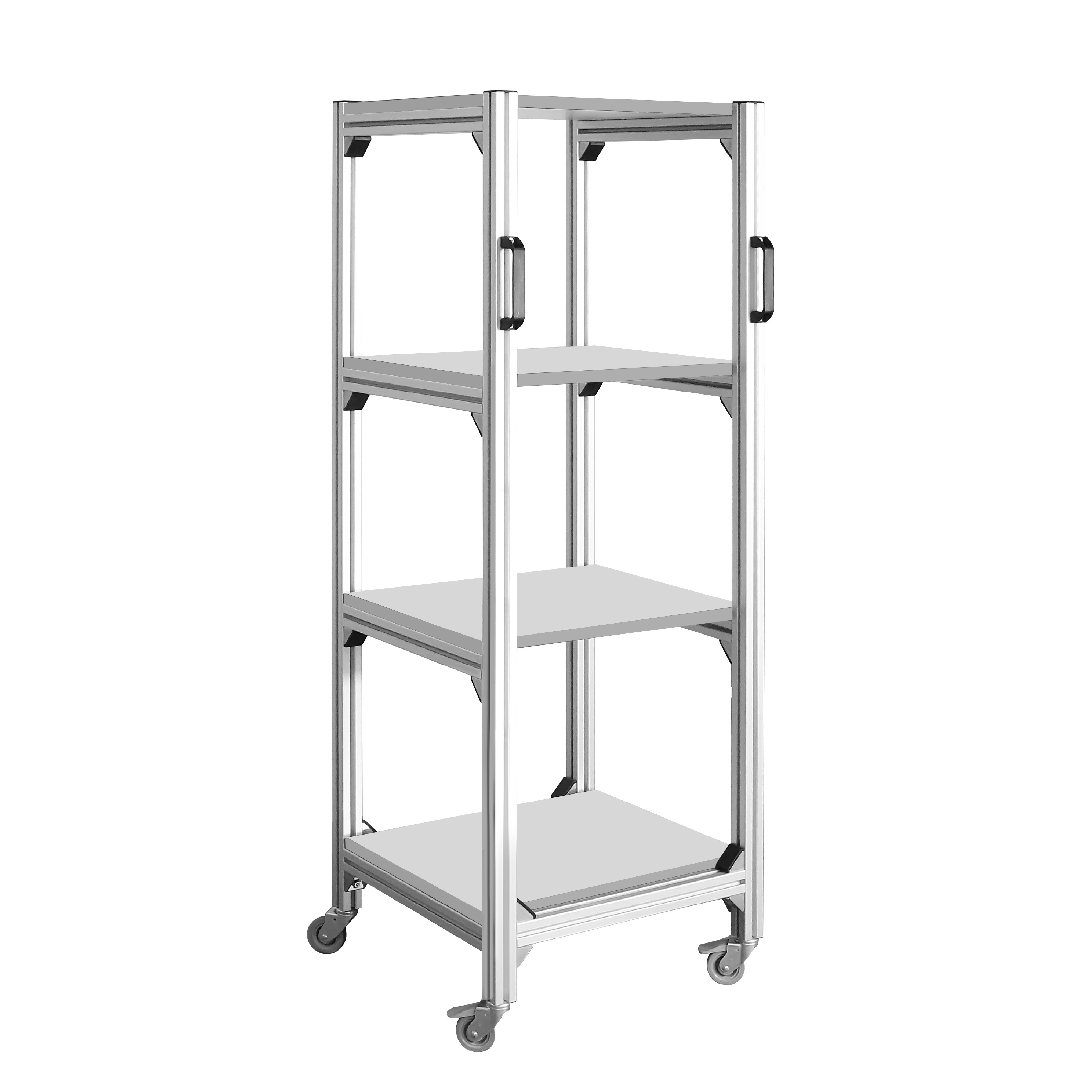 Стойка для приборов и оборудования изготовлена из конструкционного профиля и предназначена для размещения и перемещения оборудования в рабочем пространстве. Стойка СОП-КП оснащена четырьмя полками, раздельно регулируемыми по высоте. Высота стойки — 1700 мм., ширина полок — 600 мм., глубина полок — 600 мм. Имеются четыре колесные опоры, две из которых с механизмом фиксации. Конструкция позволяет оснастить подкатную стойку дополнительными полками и электропанелью на 6, 8, 12 розеток.
