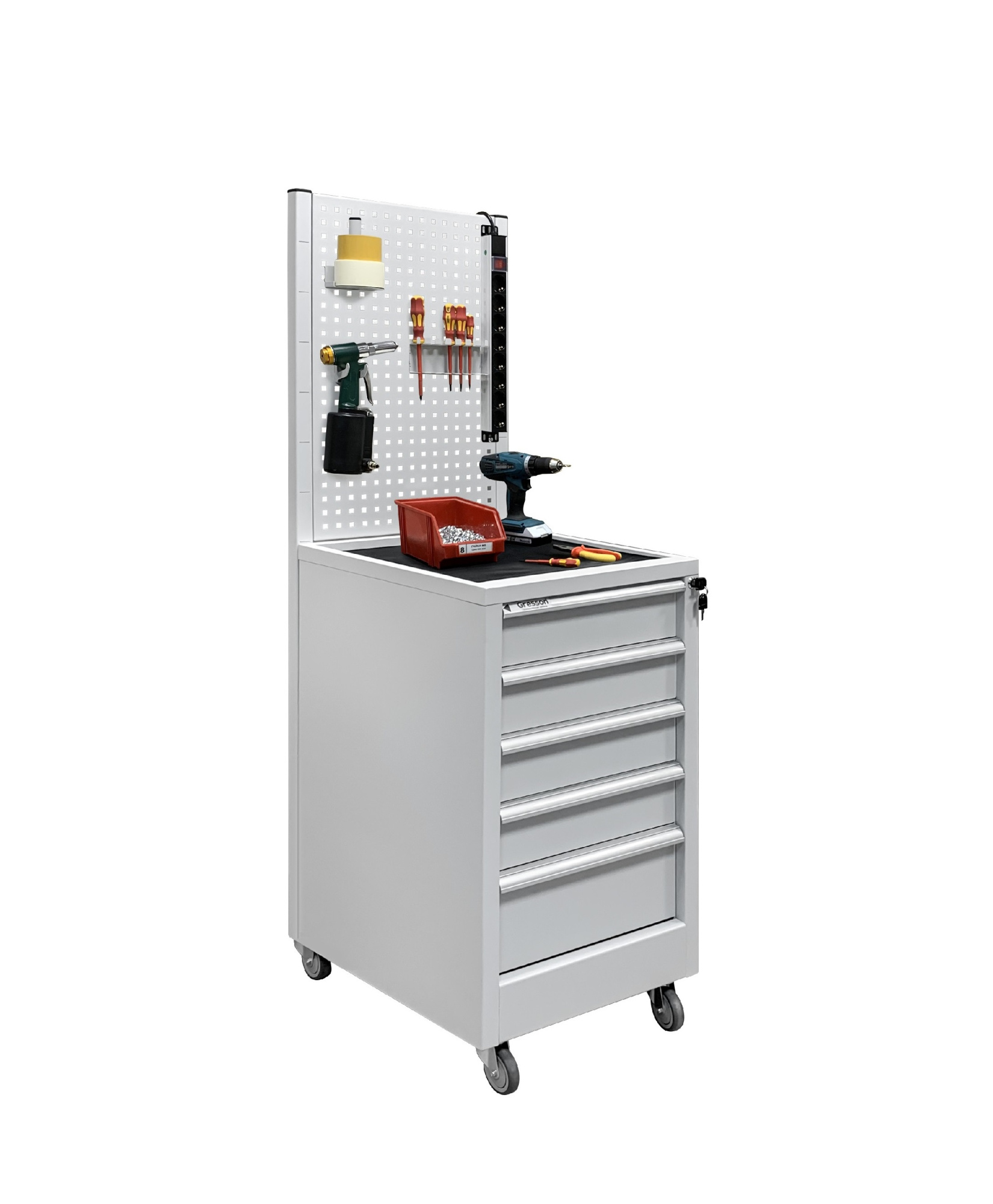 Стойка подкатная ремонтная СР используется для размещения инструмента и оборудования с возможностью дальнейшего перемещения в рабочем пространстве. В стандартную комплектацию включены: резиновый коврик (в комплектации СР-Ф используется фанера), комплект стоек, перфопанель. Стойки регулируются по высоте от 1600 до 2050 мм. Дополнительно на стойку можно установить планку для крепления лотков ПЛР. В качестве покрытия подкатной стойки СР может быть использована фанера, комплектация СР-Ф.