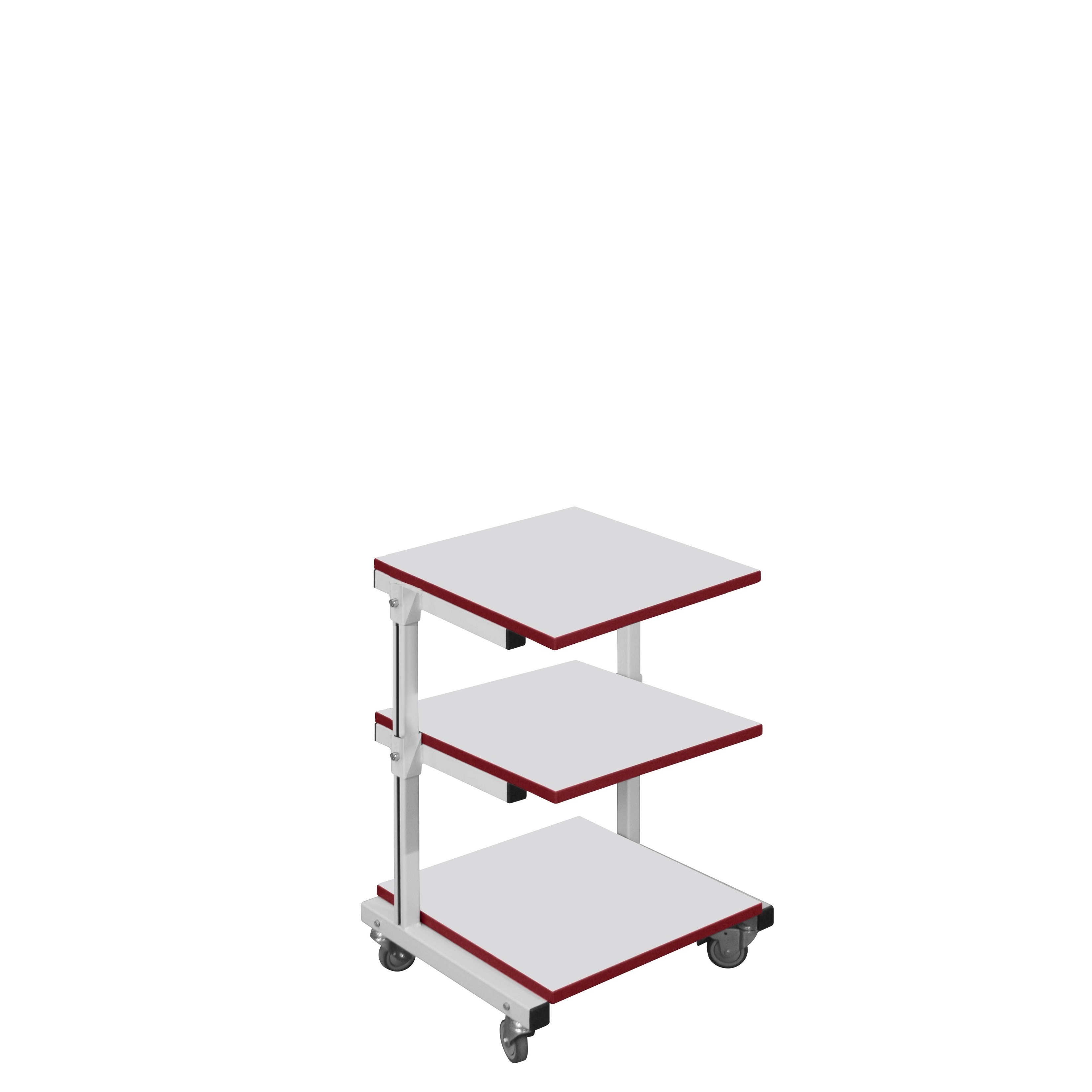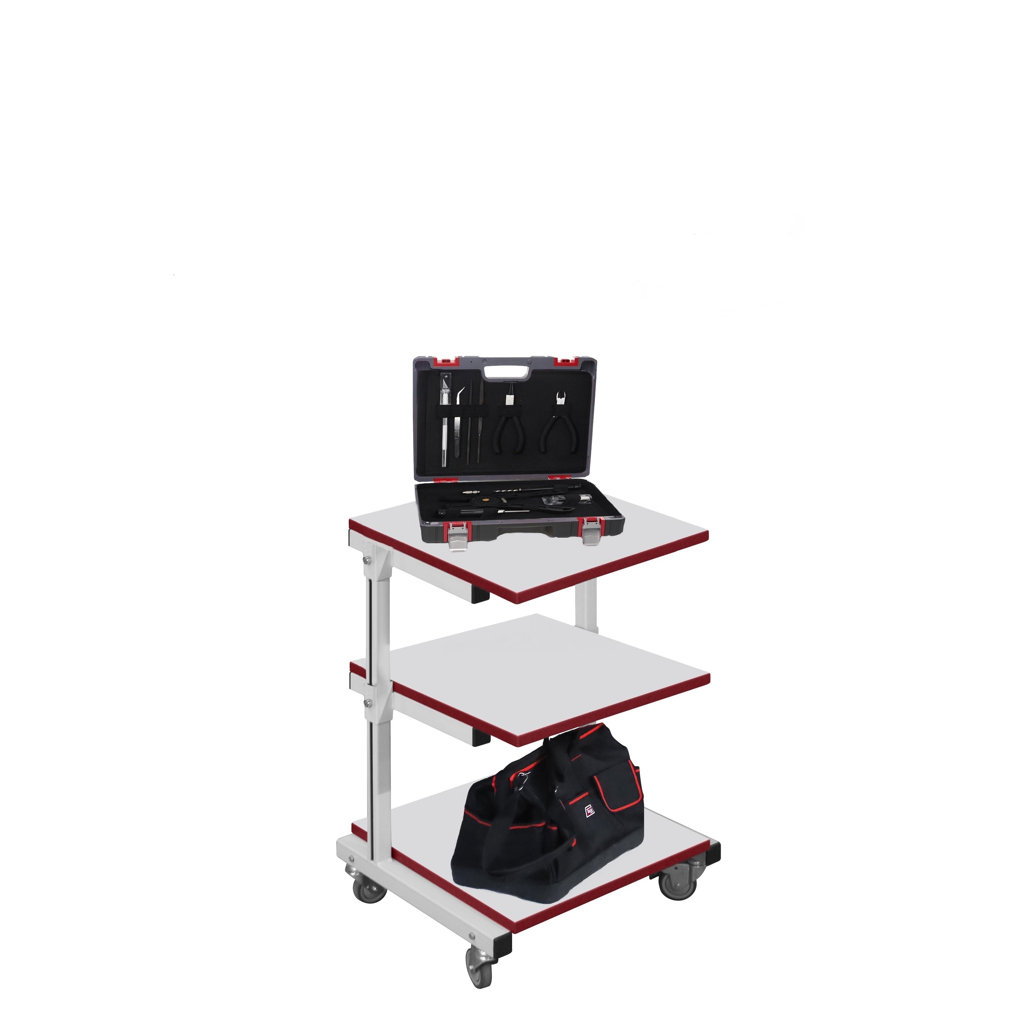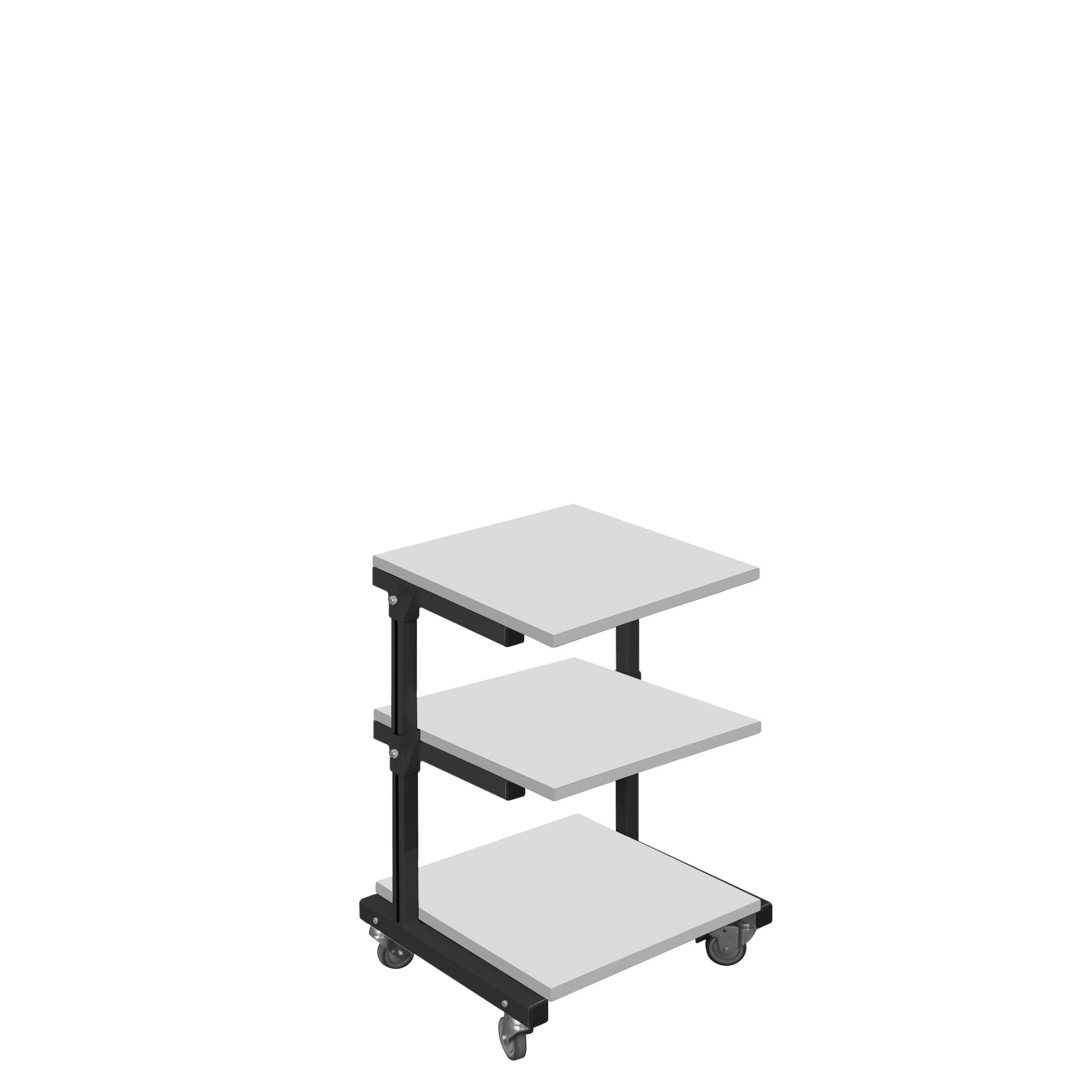 Стойка подкатная промышленная оснащена тремя полками, раздельно регулируемыми по высоте. Конструкция позволяет оснастить стойку дополнительными полками и электропанелью на 6, 8, 12 розеток.