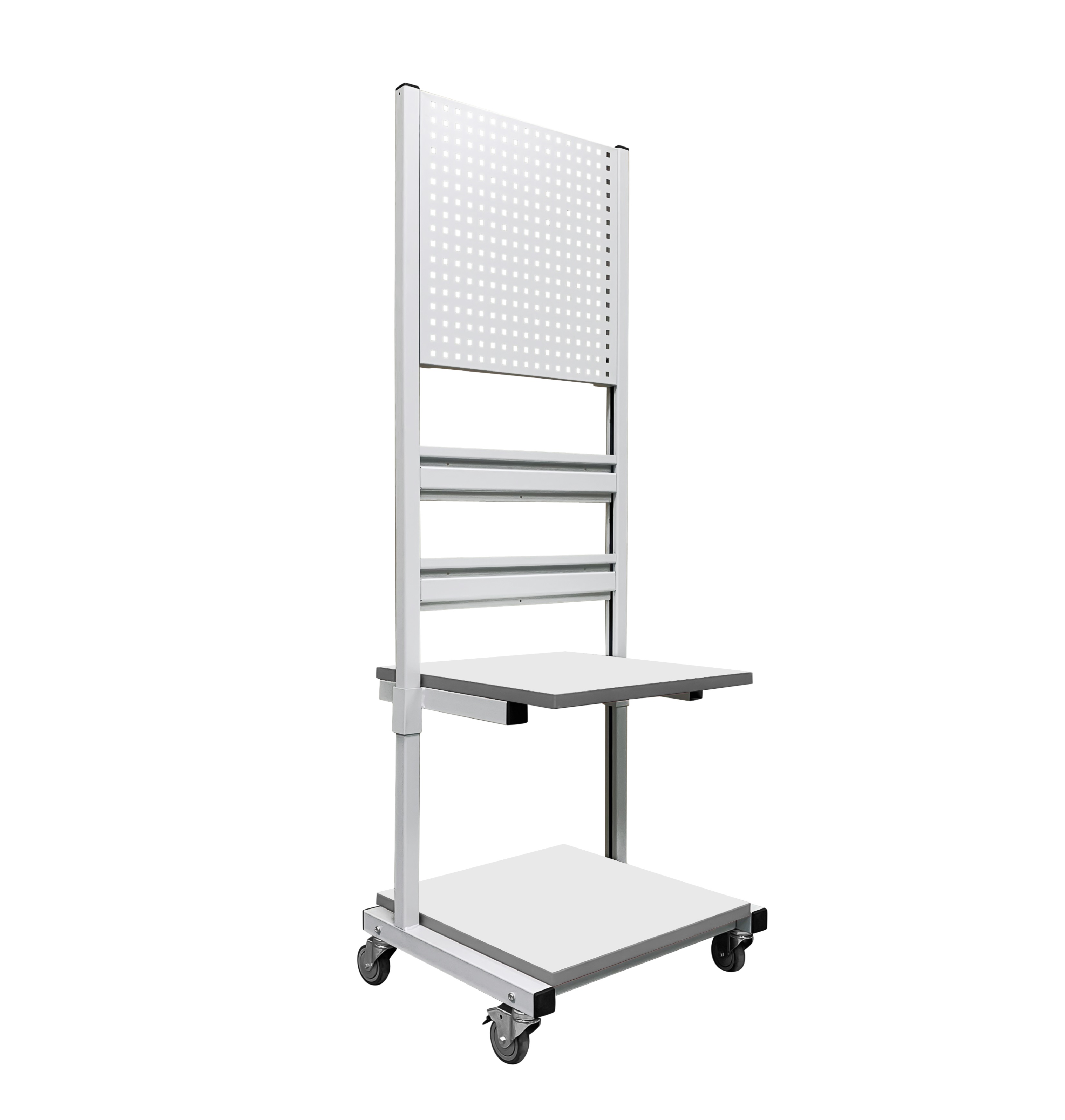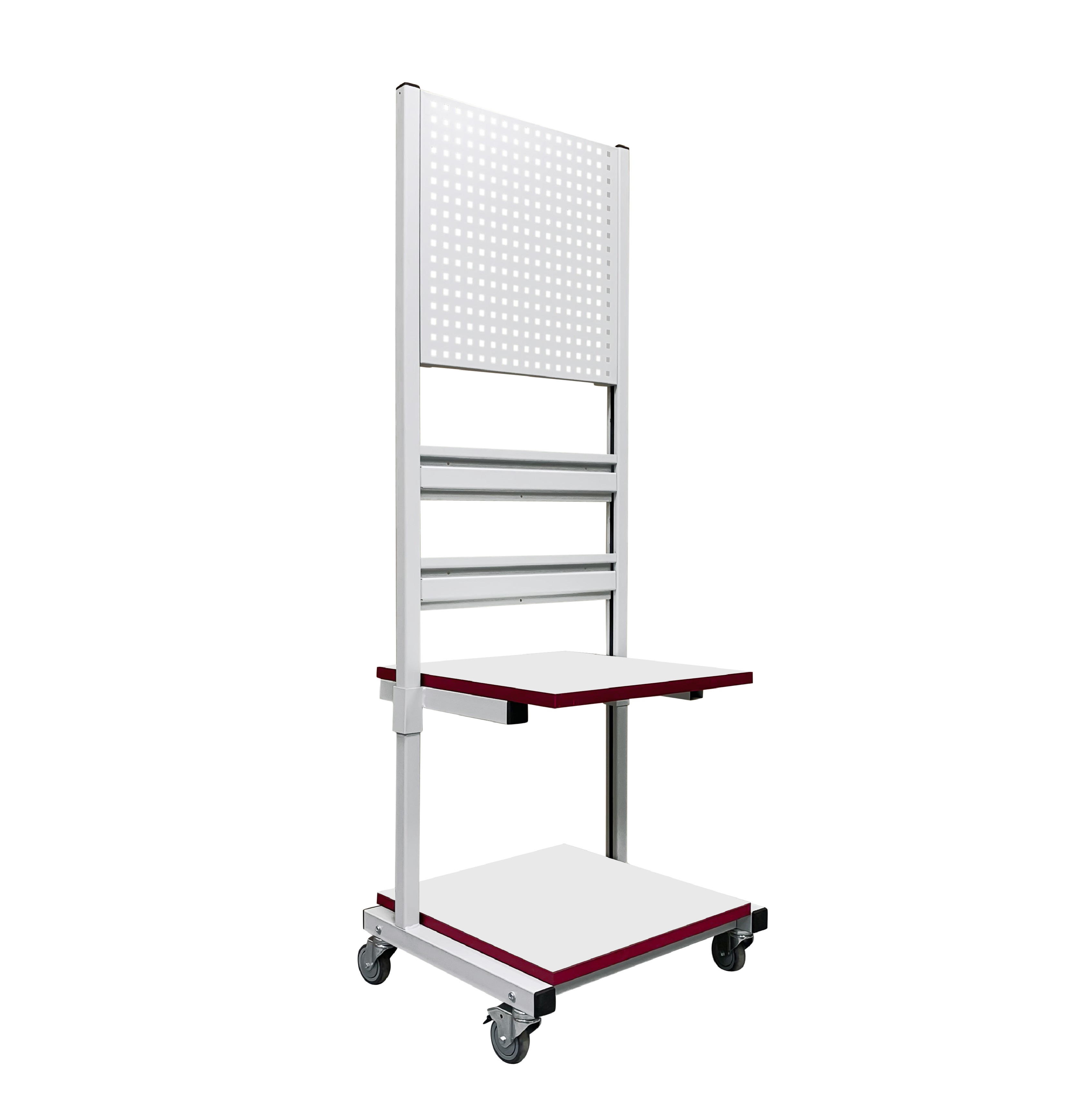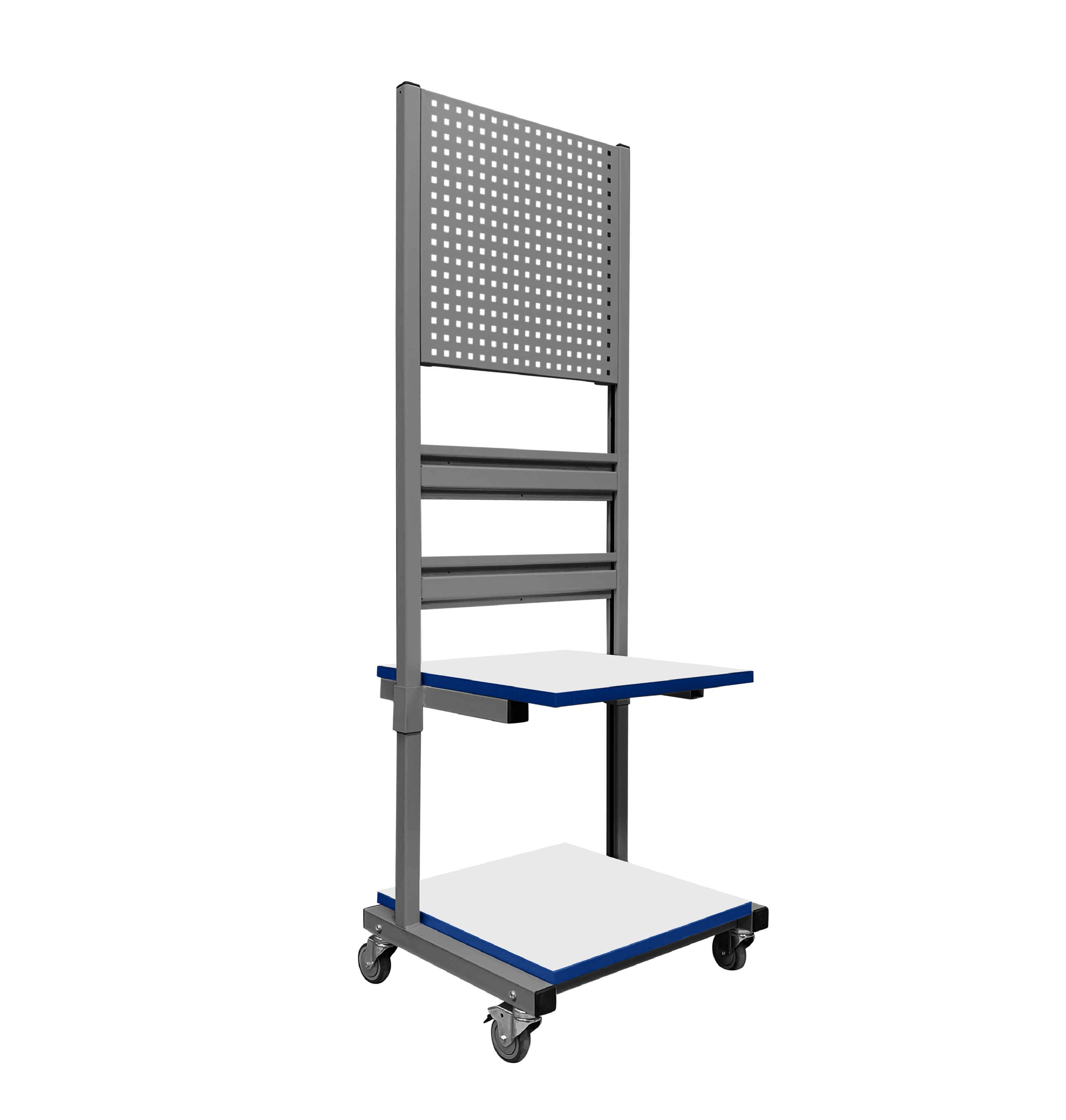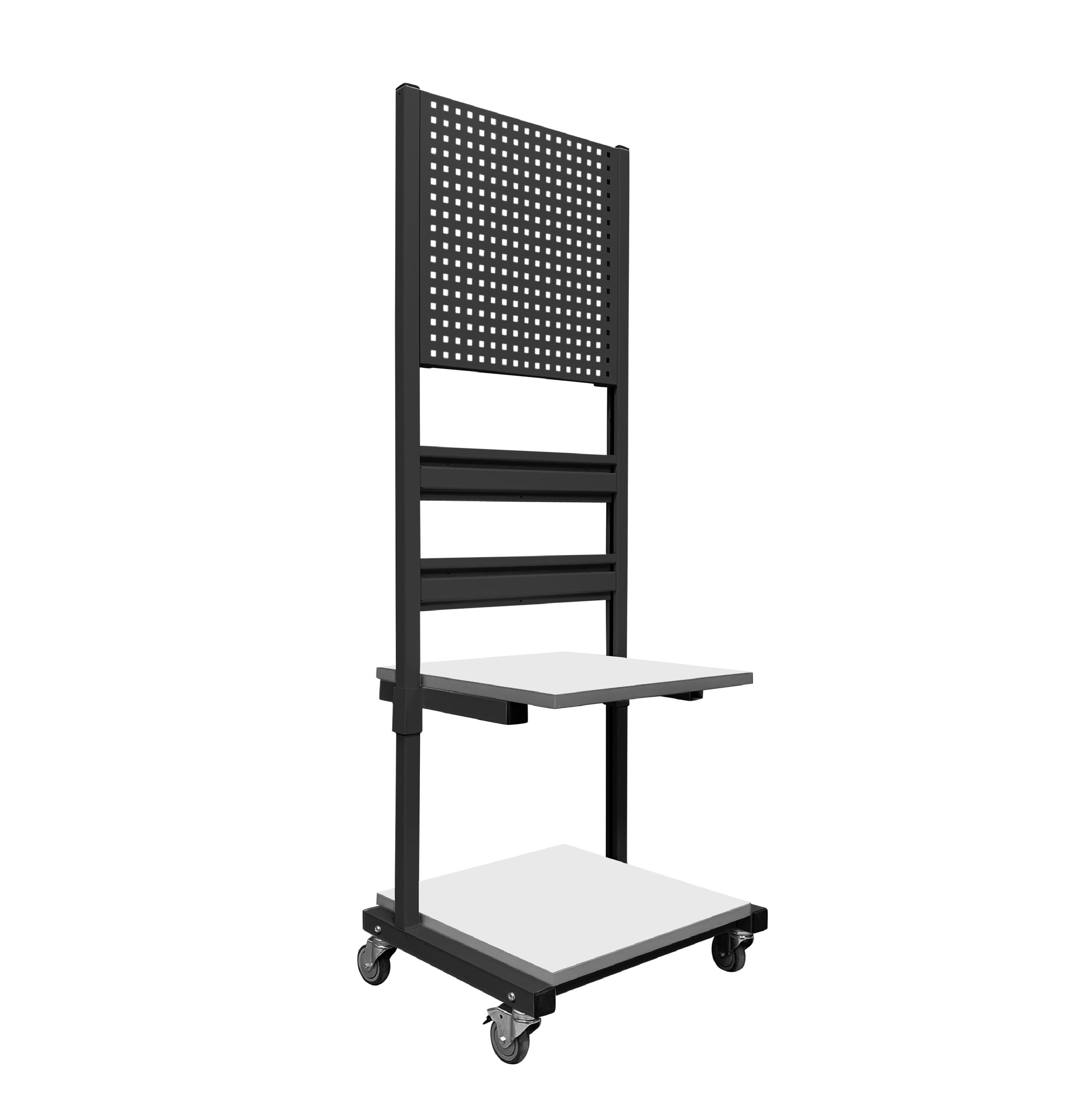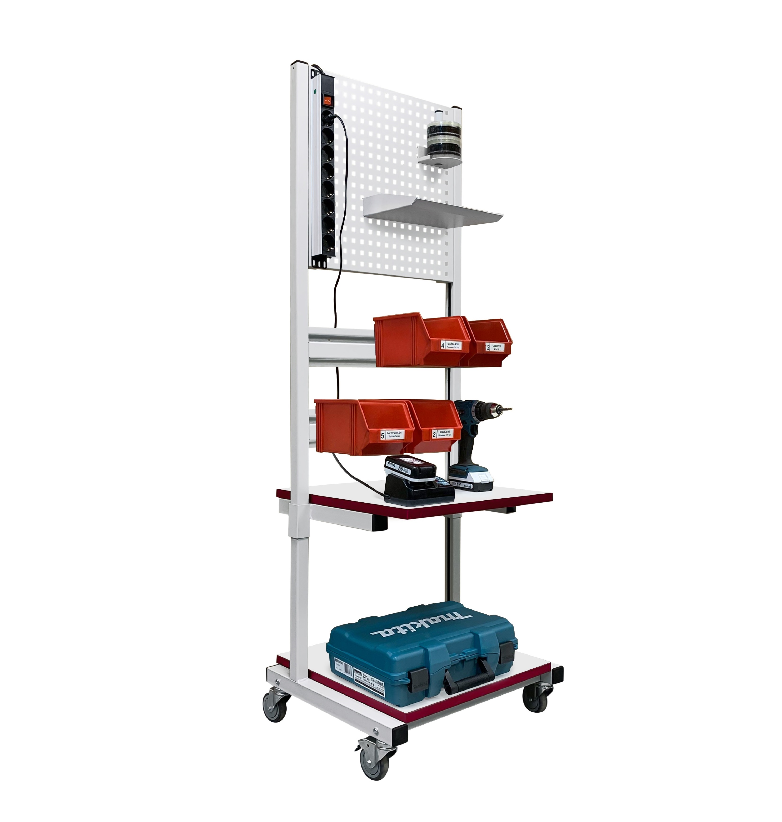 Стойка подкатная универсальная СПУ используется для хранения и перемещения инструментов, материалов и комплектующих в рабочем пространстве.