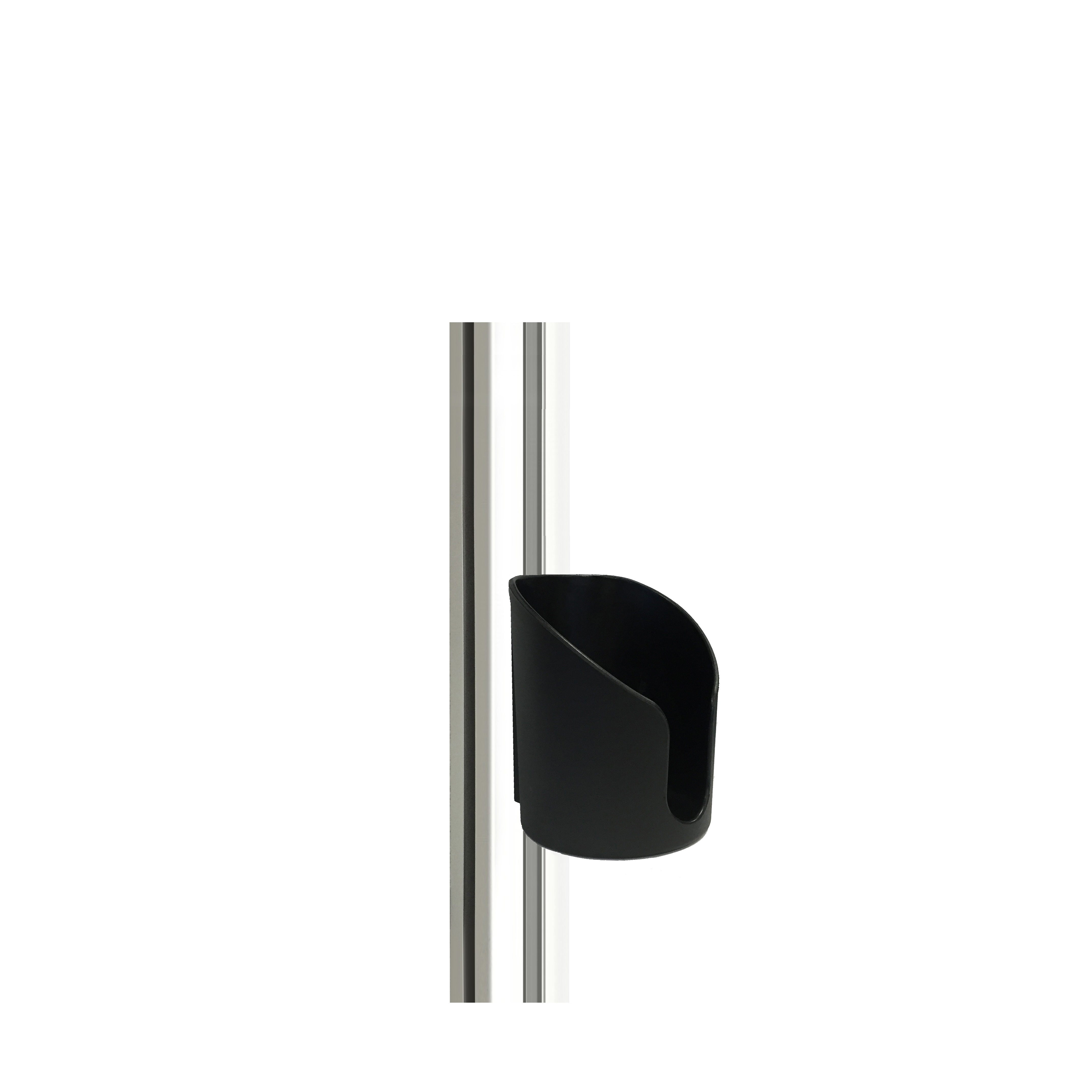 Конструкция держателя предусматривает надежное размещение во избежание его опрокидывания и обеспечивает фиксацию в вертикальном положении. С помощью болта и монтажного отверстия в держателе его можно расположить в любом удобном месте в изделиях, изготовленных из конструкционного профиля.