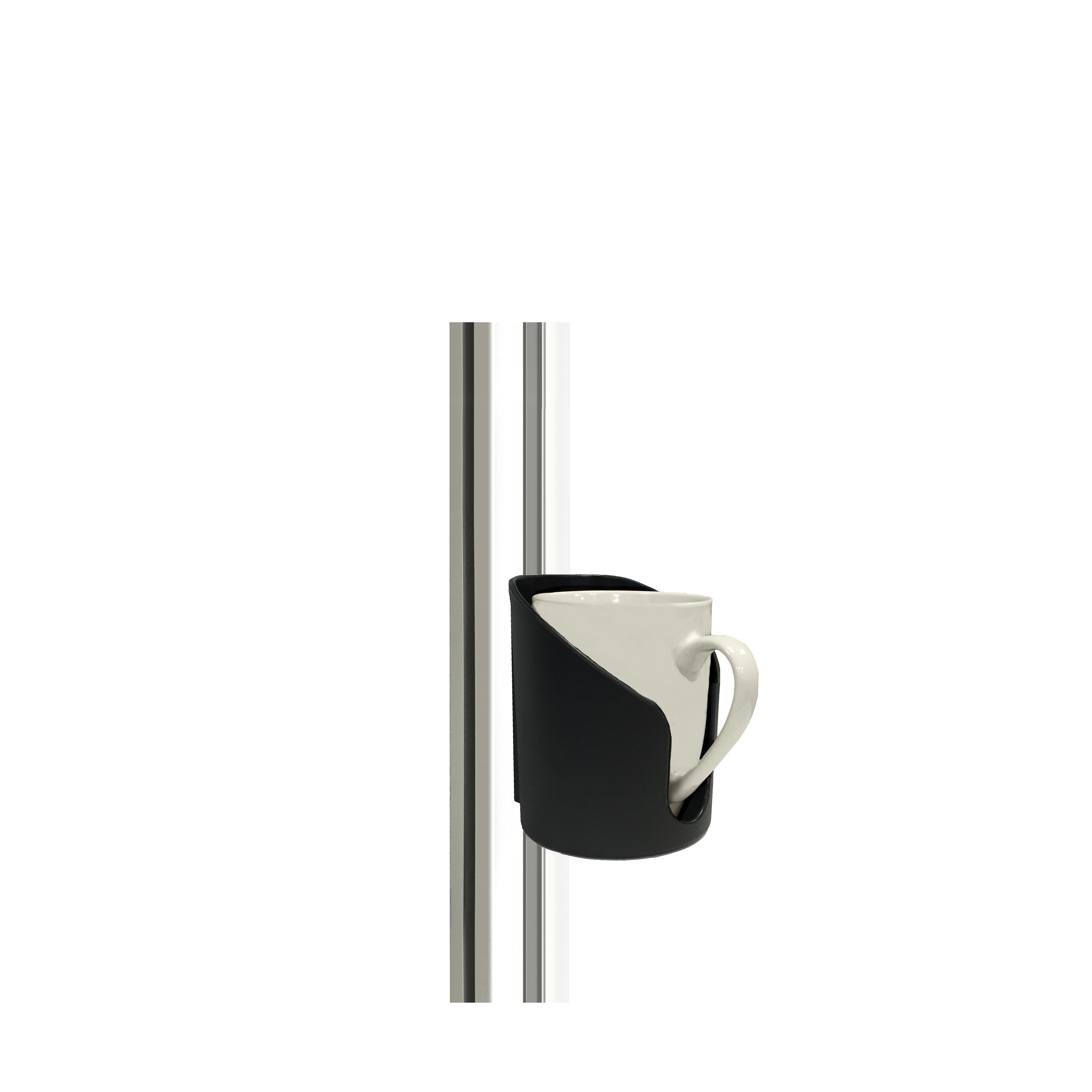 Подставку можно расположить на рабочем столе. Внутренняя часть вмещает стаканы, бутылки и кружки диаметром до 8 см и имеет вырез под ручку кружки.