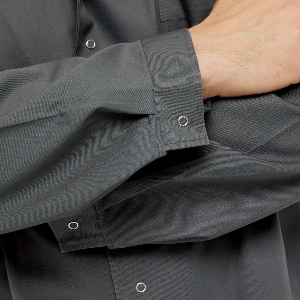 - Длинные, прямые, втачные, одношовные рукава — обеспечивают свободу движений и удобство в эксплуатации.